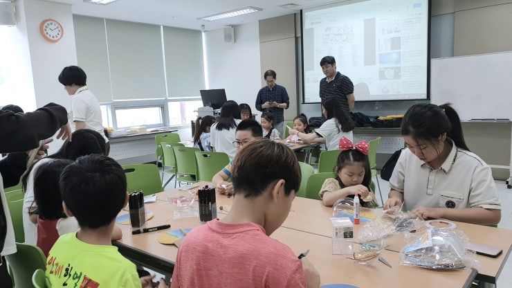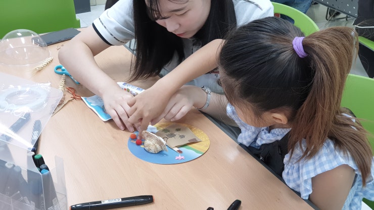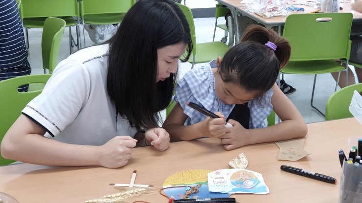 효명고 꿈날개 봉사단원들이 아이들과 함께 1:1로 옆에서 함께 만들면서